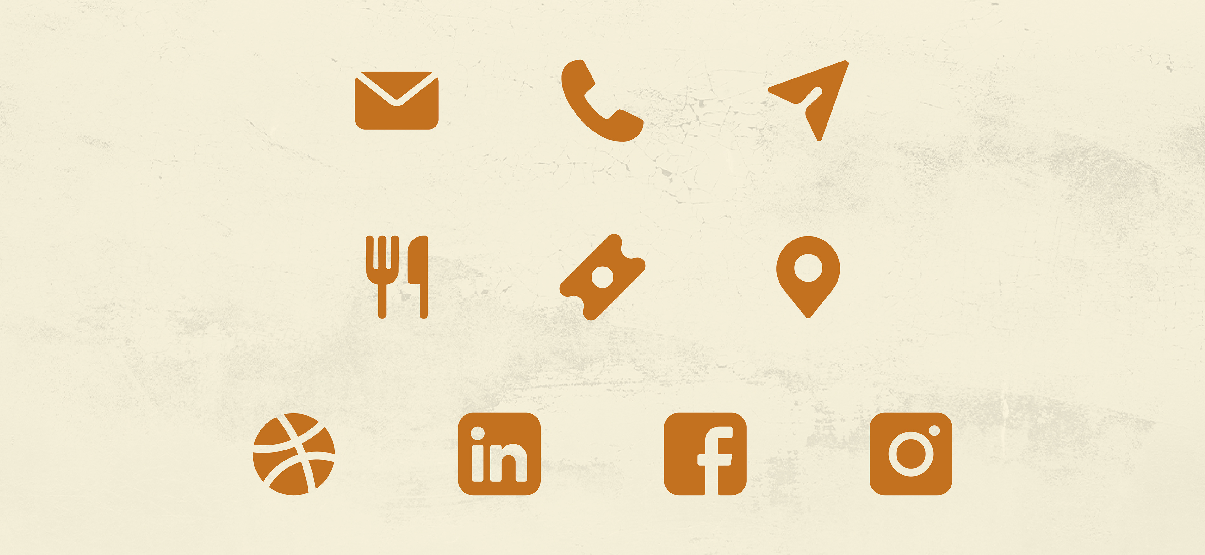 Les éléments secondaires tels que les pictogrammes, illustrations, palette de couleurs et typographies secondaires permettent de bien ancrer la marque dans tous les supports où elle vivra. L’utilisation de la couleur orange ramène la stylistique vintage et chic tout en rendant le tout chaleureux, une qualité essentielle à l’entreprise.