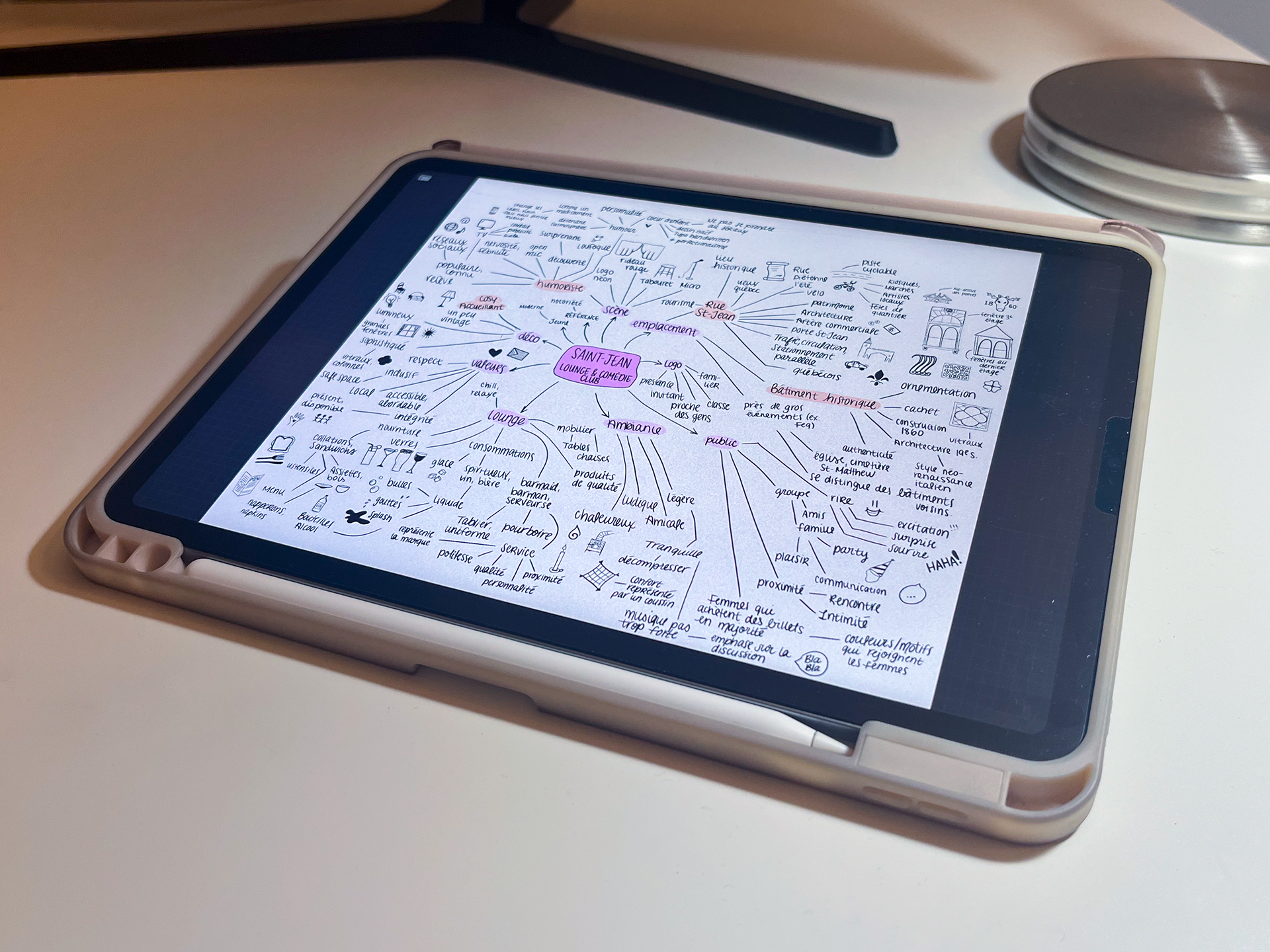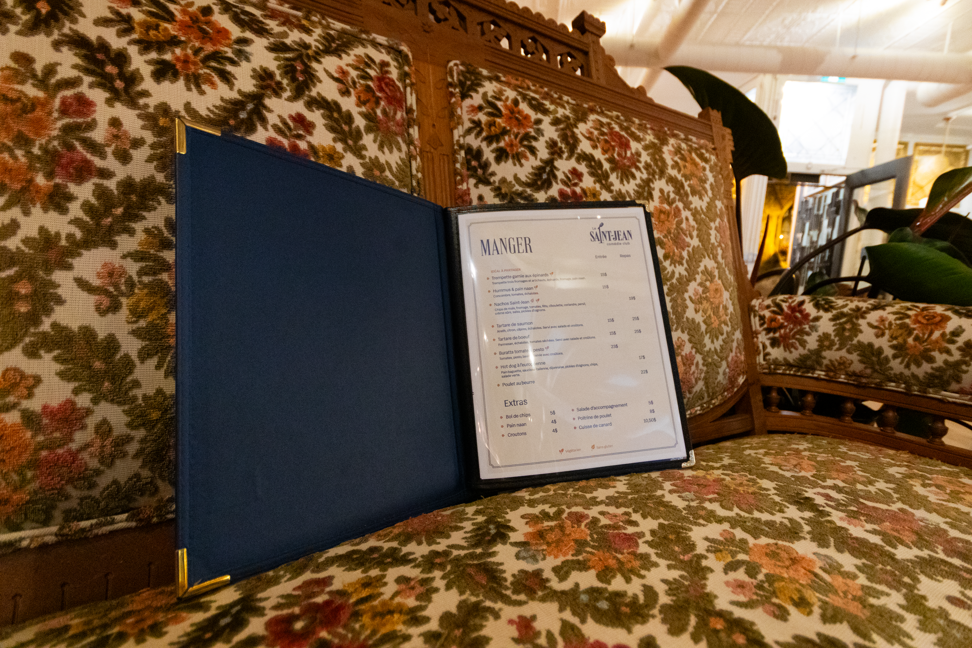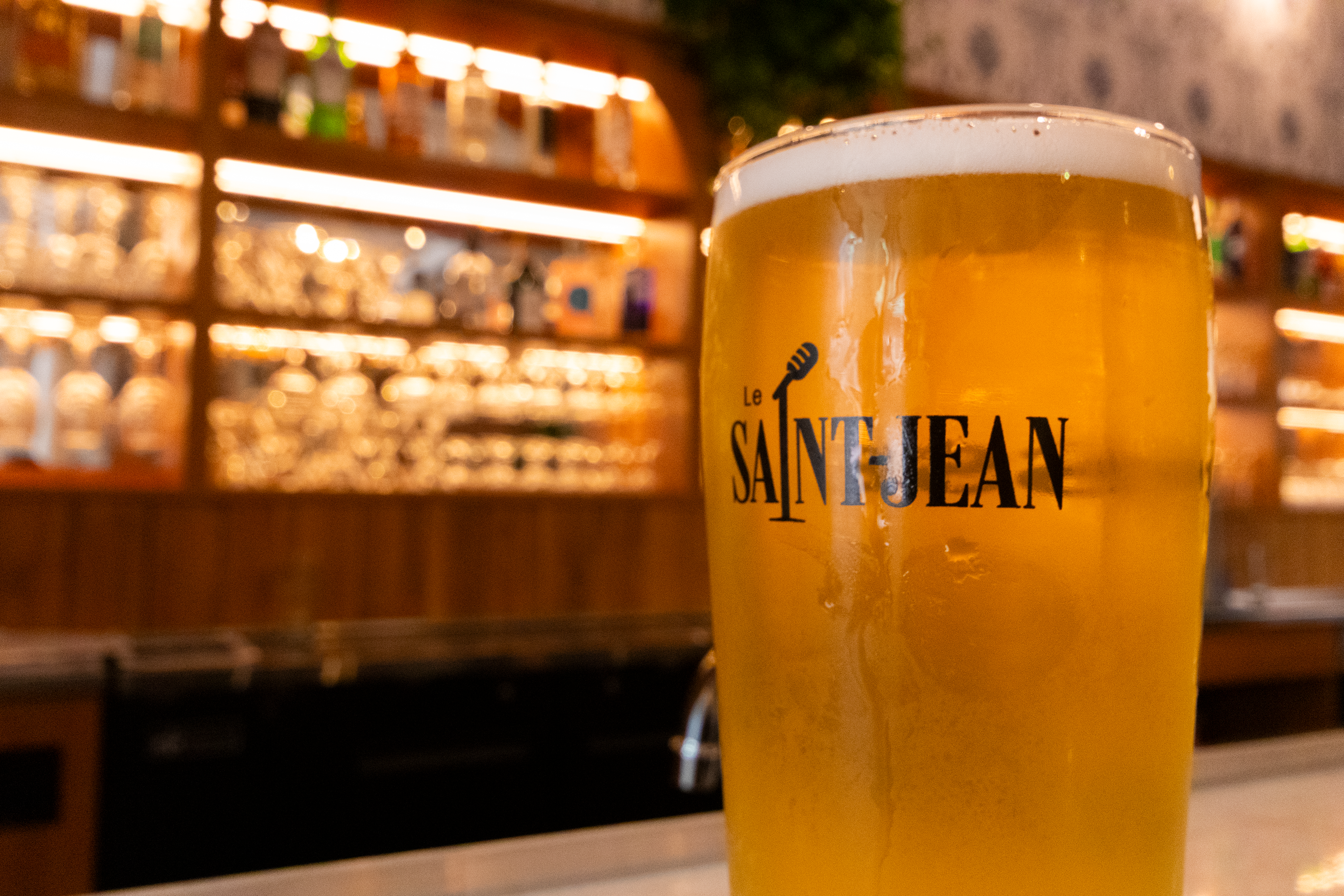 Ainsi, l’image de marque du Saint-Jean s’articule autour du symbole emblématique du stand-up : le micro. Celui-ci prend vie dans un style rétro et vintage, mettant en valeur le cachet unique de l’architecture du bâtiment construit en 1860. Cette esthétique vintage et minimaliste confère à la marque un raffinement, qualité et crédibilité. Ces particularités se retrouvent également à l’avant-plan du décor, qui conserve l’aspect d’origine tout en y conjuguant modernité et confort.